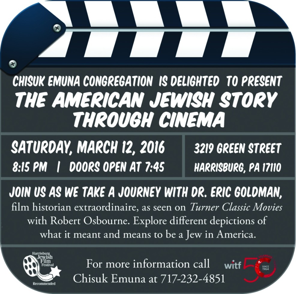 Chisuk Emuna presents Dr. Eric Goldman, film historian extraordinaire, as seen on Turner Classic Movies with Robert Osbourne. Explore different depictions of what it means and means to be a Jew in America through film.